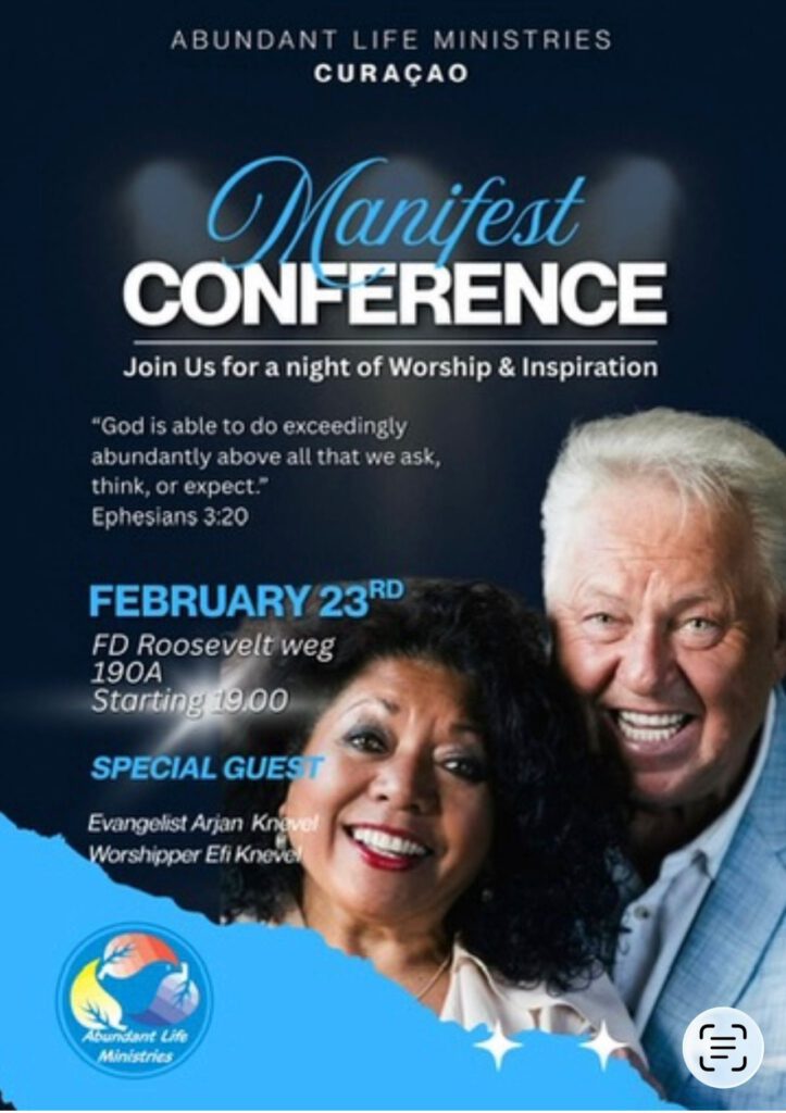 We zijn uitgenodigd door onze vrienden, voorgangers Kenneth en Ineke Tijm en onze longtime vrienden, voorgangers Papi en Maurena Espri om in hún schitterende kerk een evangelisatiedienst te houden inclusief 2 Conferenties waar we zullen zullen dienen!!